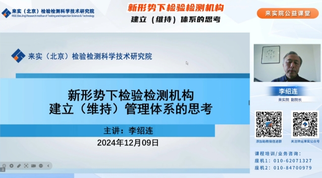 “新形势下检验检测机构建立(维持)体系的思考”落下帷幕,本次直播讲座由im电竞院李绍连老师主讲,整场直播历时近3个小时,观看量达5000多人次,授课内容受到学员的一致好评。